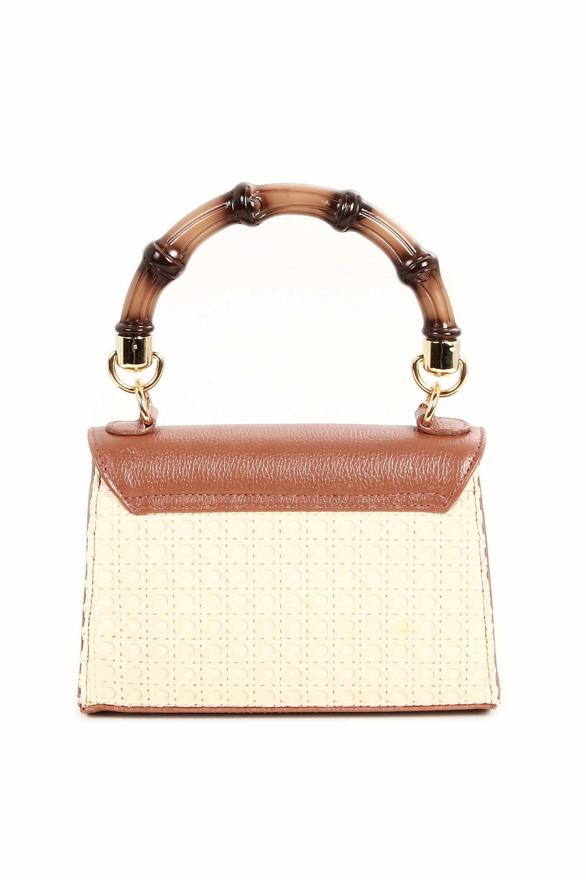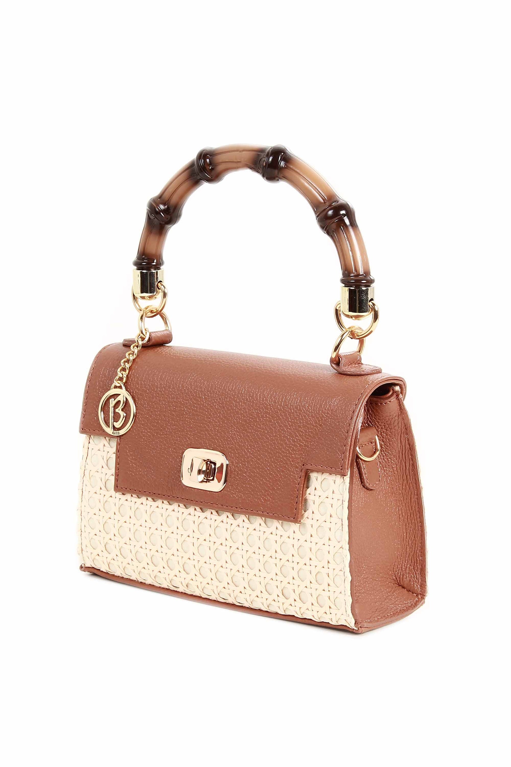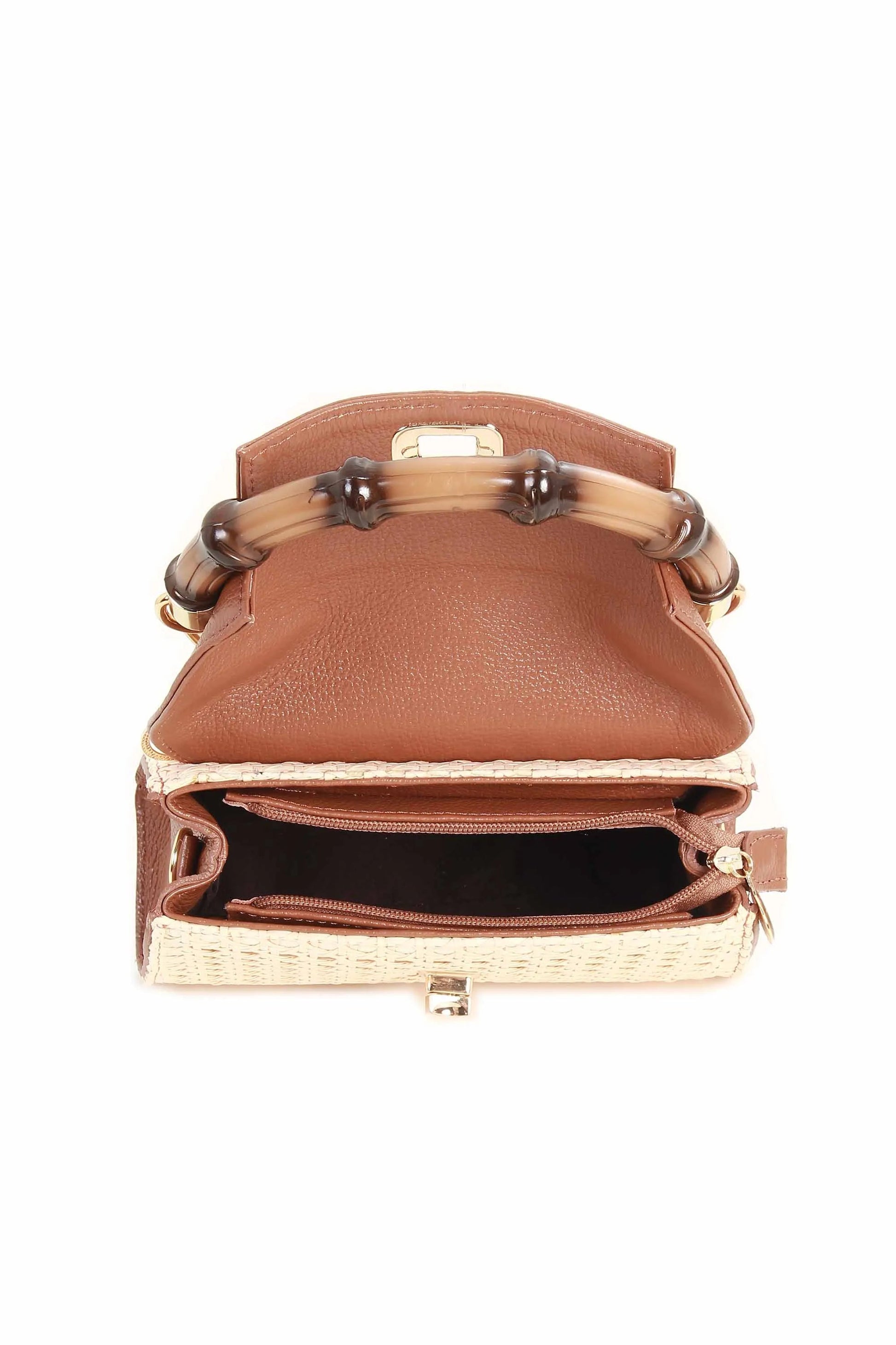 Bolsa palha e couro com alça de bambu. Feita em couro de alta qualidade, esta bolsa destaca-se pelo detalhe em palha que adiciona um charme natural ao acessório. Seu design compacto e sofisticado combina elegância e funcionalidade, perfeito para diferentes ocasiões.